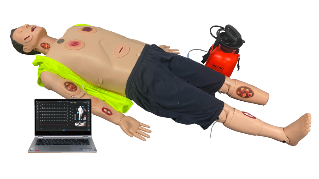 The Trauma Kit is designed to enhance realism in trauma care training by integrating seamlessly with our ALS simulators, ACTB and ACTB-. With multiple interchangeable trauma modules, it allows learners to practice a wide range of trauma management skills, including bleeding control, wound care, and fracture treatment. The kit provides enhanced hands-on experience in realistic scenarios, preparing users for effective response in emergency situations.